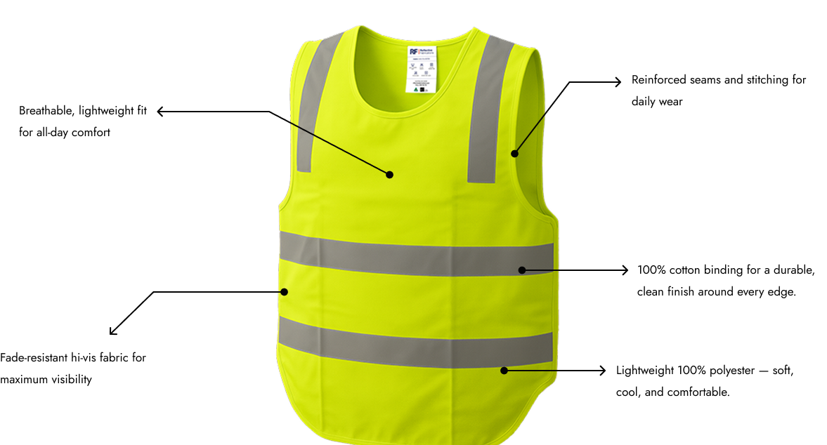 Every T1 Tabard is cut, stitched, and finished right here in Melbourne by the same team that’s been supplying safety gear for over 38 years.